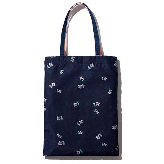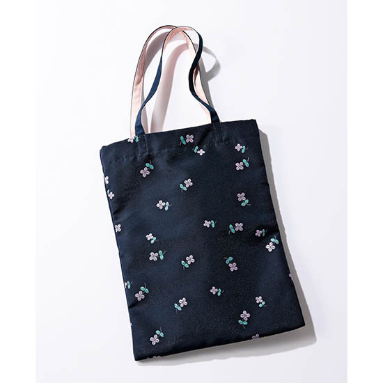 made in Japanにこだわった丁寧なモノづくりでファンが絶えない「yori」。可愛くてケアも簡単! と大人気だったオリジナル柄「lame clover」シリーズでVERYと初コラボでネイビートートを制作しました。「lame clover」柄は光沢のあるラメ感と立体が特徴の職人による手刷りプリントで刺繍のような繊細さ。見た目こそ華やかですが、ポリエステル素材のオーガンジー生地とキャンバス生地でとってもタフ! 総柄プリント面とシンブルなネイビー面、それぞれシーンに合わせて使い分けられるのも嬉しいポイント。A4ファイルがしっかり入り、内ポケットも完備で使い勝手も抜群です!