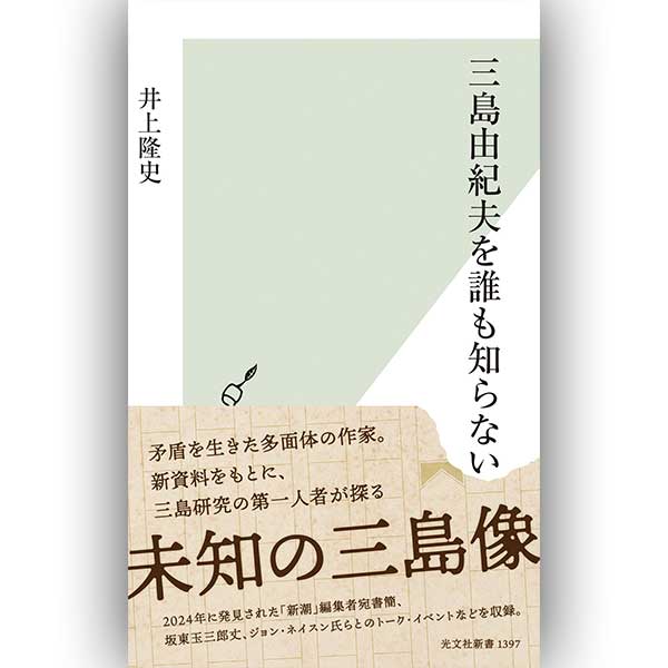 『暴流の人 三島由紀夫』(平凡社、2020年)で読売文学賞・やまなし文学賞を受賞し、三島研究の第一人者として知られる白百合女子大学教授の井上隆史氏。これまで井上氏は、三島の作品や思想の意義を現代に伝える活動を行ってきました。2025年には「三島由紀夫生誕100年祭」の実行委員長として様々なイベントを企画・開催しました。その成果も交えて世に問うたのが、『三島由紀夫を誰も知らない』です。本書には、2024年に発見された「新潮」編集者宛書簡の解読、そして坂東玉三郎氏やジョン・ネイスン氏(翻訳家・評伝Mishima著者)らとのトーク・イベントなどの様子も収められています。また、昭和とはいかなる時代だったのかという観点から、太平洋戦争、占領期、高度経済成長という三つのキーコンセプトで三島由紀夫の文学、思想について考え直す論考なども収録されています。あらためて、三島由紀夫とはいかなる存在だったのでしょうか。じっくり語っていただきます。