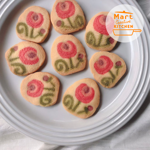 パーツを作ってくみ上げるだけで、切ってみると可愛い柄のクッキーが!