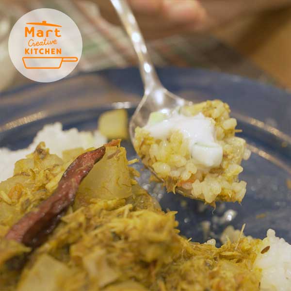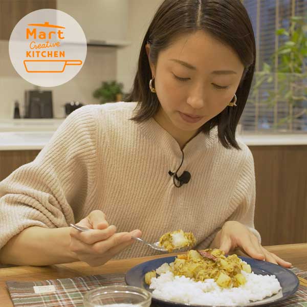 関西を代表する「カレーマニア」タレントの小塚舞子さん。大阪、神戸、京都だけでなく、東京をはじめ全国の有名店を食べ尽くした彼女が編み出した「自宅で作れる」本格派スパイスカレーをMart Creative KITCHENのために大公開! 主役のカレーだけでなく、付け合わせやチャイ、また自家製のスパイスブレンドもお見せします。本格スパイスマニアながら、小さなお子さんのママでもある小塚さんが、「子育てしながら、家で食べられる」とっておきを一挙にお知らせ!