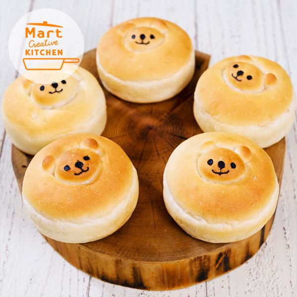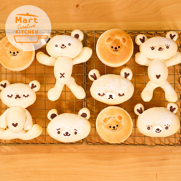 レッスンメニューでは、ひとつの生地から「かわいいくまパン」と「毎日食べたいスタンダードなパン」を展開し、おうちでの復習のしやすさも心がけている。