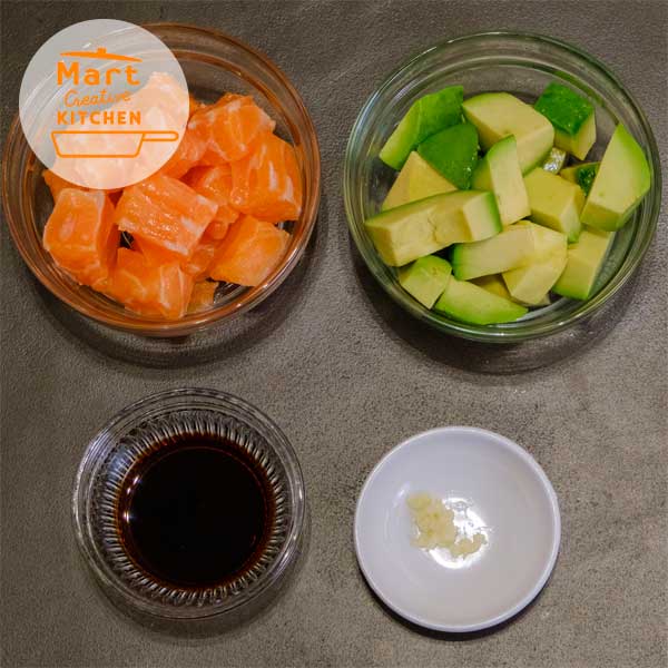 08 赤柚子胡椒ドレッシングでサーモンポキ丼