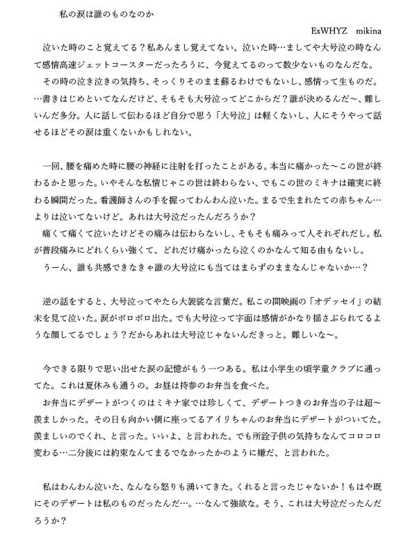 月刊WACK「筆力バトル」手書き原稿データ有料購入&投票券【mikina/ExWHYZ(10票)】※11月11日まで
